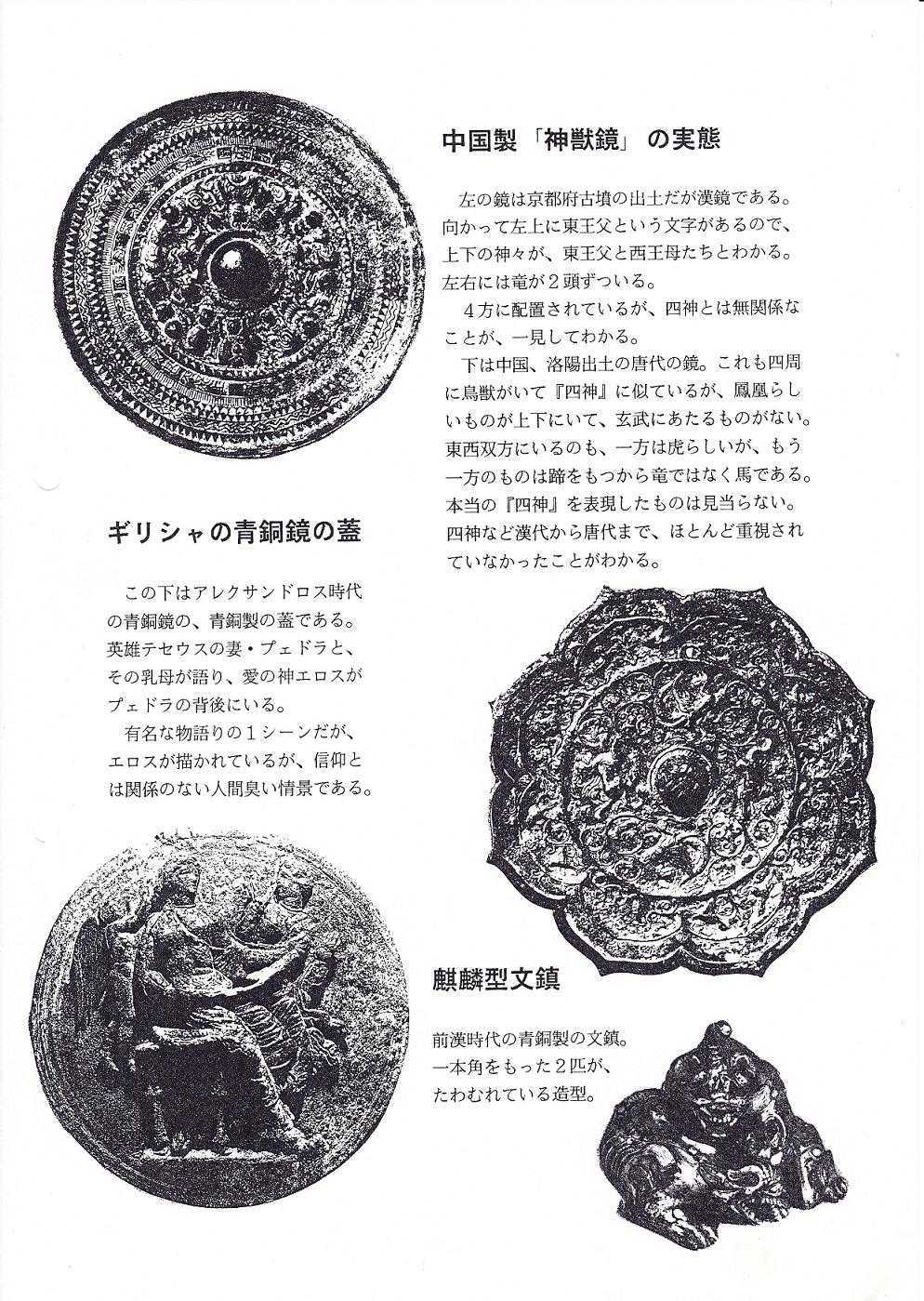 「図」中国製「神獣鏡」の実態、ギリシャの青銅鏡の蓋と前漢時代の麒麟型文鎮